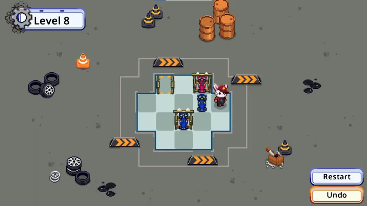 Get ready to hop into action in Bunny Pit Stop, a puzzle game where a clever rabbit mechanic takes center stage. Inspired by the classic push-and-place style, your mission is simple but tricky: push cars into their maintenance bays and keep the garage running smoothly. The game is designed to be casual and relaxing, but don’t let that fool you. Each level introduces new layouts and patterns that make you think ahead, plan your moves, and find the perfect sequence to clear the board. You’ll start small, with just one or two cars per puzzle. Soon enough, the challenge grows as more cars crowd the space, demanding careful strategies and creative solutions. No timers, no stress, just you, the bunny, and the satisfying click of every car finding its spot. Explore three unique biomes across 35 levels. The Garage is messy and filled with oil stains, tires, and barrels, marking the beginning of your rabbit’s career. Then comes the Pit Stop, right next to the racetrack, with vibrant details like vegetation and advertisement signs. Finally, the Track Median sets the stage with scattered objects, cacti, and hints of crashes, making each puzzle feel alive. With its charming theme and smooth progression, Bunny Pit Stop is the perfect choice for puzzle lovers who want a relaxing yet engaging experience.