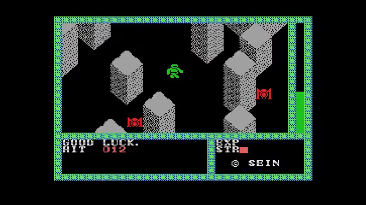 This is an action RPG released in Japan by Zainsoft in 1986. The player is a lone man who has crash-landed on a planet and explore this world of a long-dead ultra-advanced civilization, seeking a way to escape.