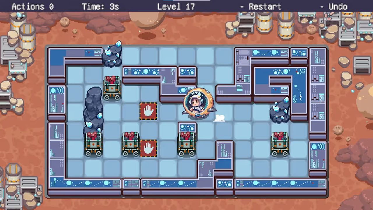 You play as a fearless miner on a crystal-collecting mission. Move through grid-based levels, plan your steps carefully, undo mistakes as much as you want, and trigger fiery explosions at just the right moment. To win, you’ll need to clear every meteor and outsmart every obstacle that stands in your way.